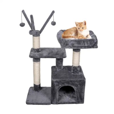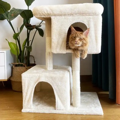 Manufacturer wholesale sisal short plush stable grey beige cat scratcher tree house