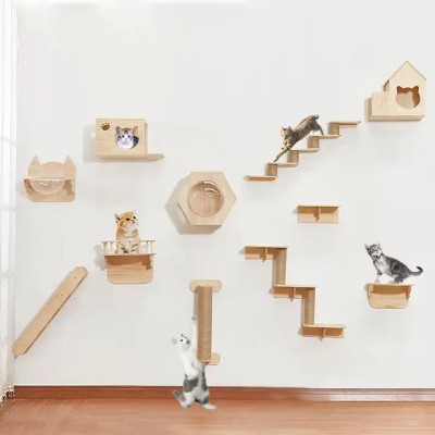 Manufacturer wholesale more design wooden cat tree modern wall mounted shelves