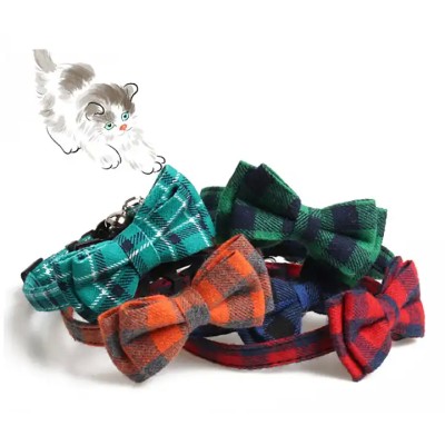 Manufacturer wholesale multi-colors plaid design cat collar with bowknot bell