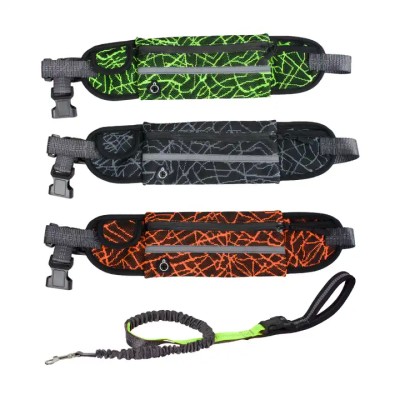 Manufacturer wholesale green orange grey reflective dog leash with pocket outdoor use