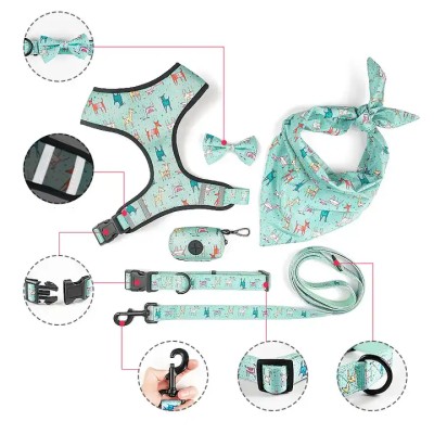 Manufacturer wholesale custom logo collar leash poop bag bandana dog harness set