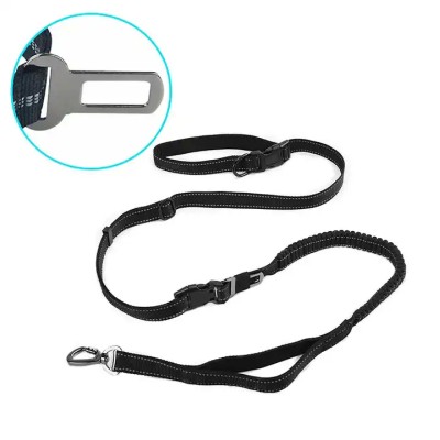 Manufacturer wholesale nylon adjustable 2 in 1 seat belt dog collar and leash set