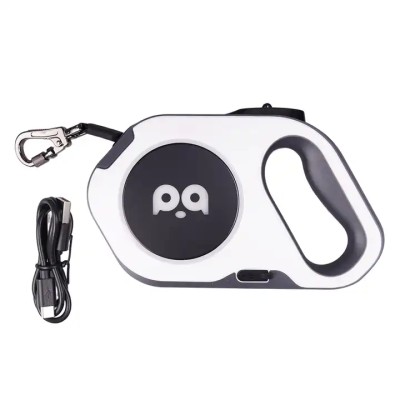 Manufacturer wholesale black white 3M dog round retractable leash with LED light