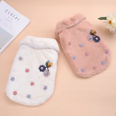 Manufacturer wholesale soft warm fleece plush cotton flower pattern pet dog coat for winter use
