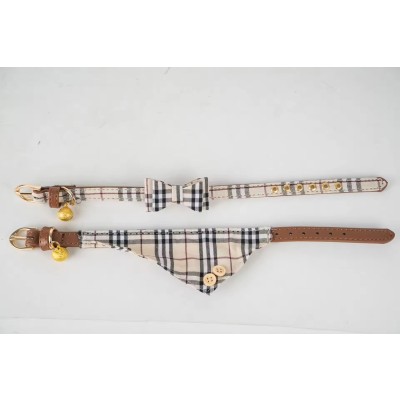 2024 Classic Dog Collar and Leash Set Plaid Adjustable Dog Bandana and Collars with Bell for Puppy Cats