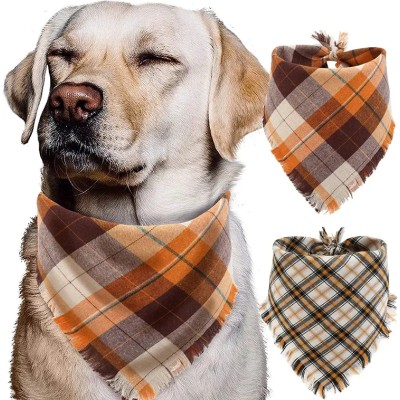 Classic Plaid Fringe Dog Triangle Bibs Reversible Halloween Fall Flannel Dog Bandana with Frayed Edges