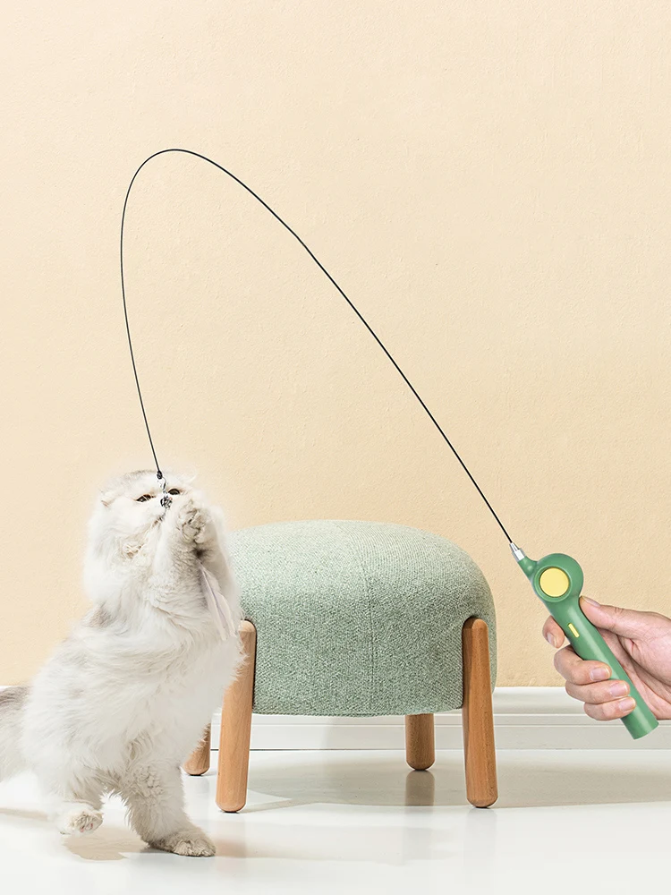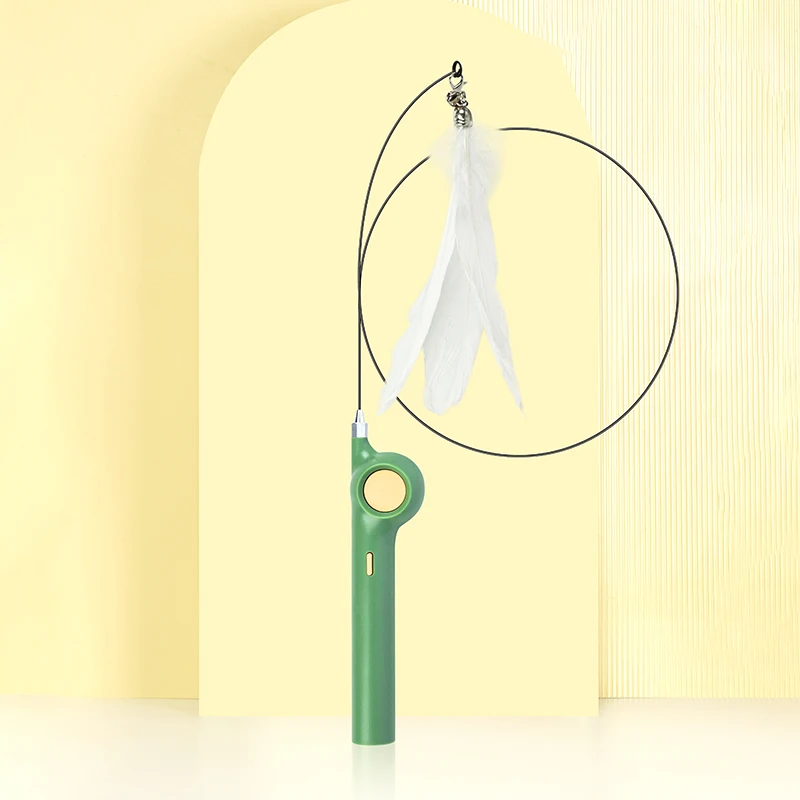 Manufacturer wholesale green white pink interactive cat feather teaser toys