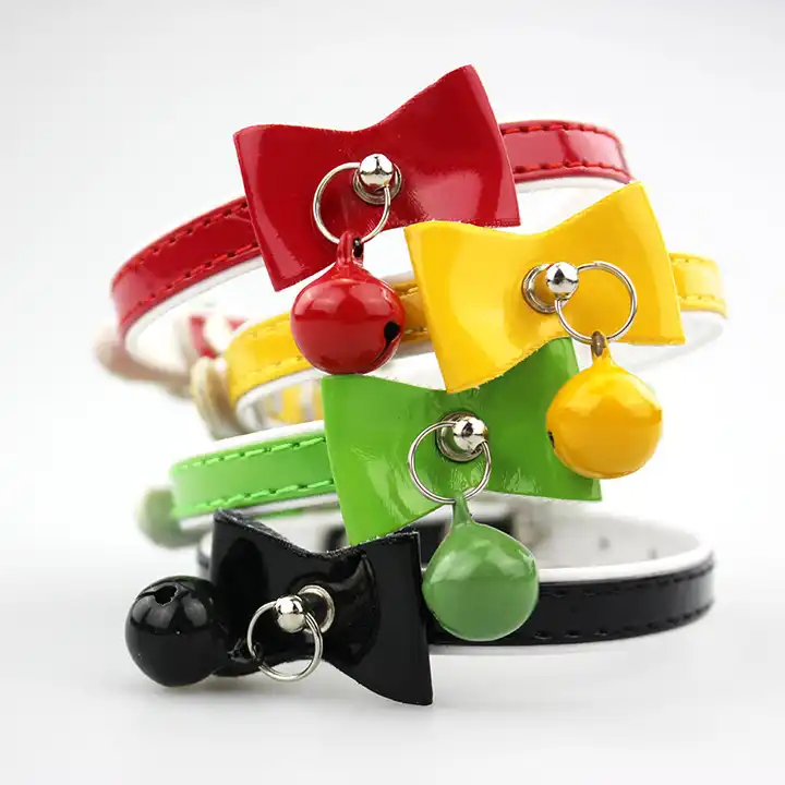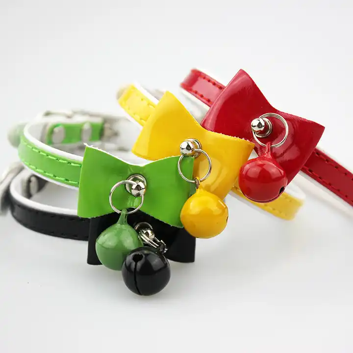 Manufacturer wholesale PU leather cat collar with bell bowknot