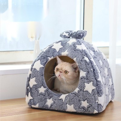 Soft Cute Cat Bed, Cat Bed Cave, Cat Cave Bed with Removable Flannelette Cushion