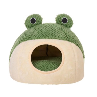Cute Frog Cat Bed with Removable Cushion Pillow, Fluffy Frogs Style Cat Cave House Green