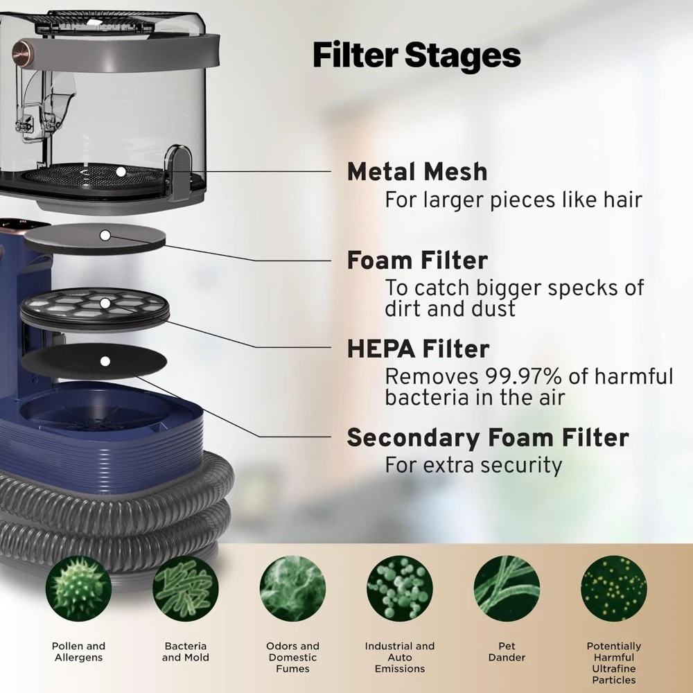 ??Perfect for grooming all sizes of pets without constantly emptying or changing bags! The ideal tool for keeping your home free of furry debris build-up! With a detachable 3.2L dust box, 25% more capacity than others, easy-to-empty does not need to be emptied often during grooming. The removable dust cup has an easy empty lid for quick, mess-free emptying after cleaning.